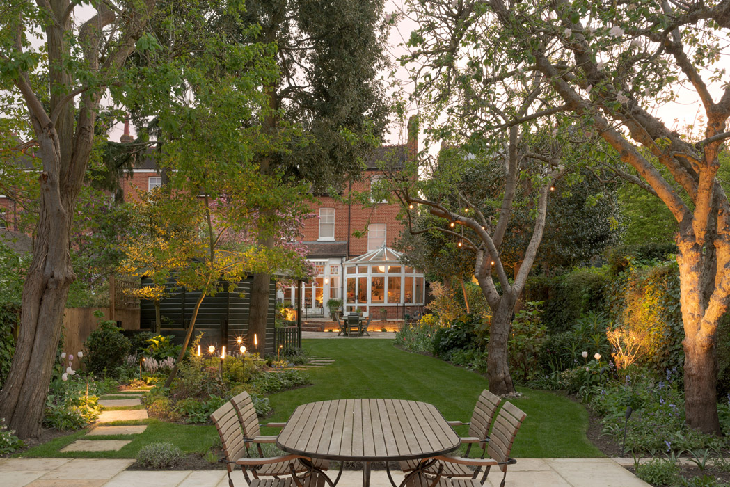 Match Lighting Studio were appointed to bring the garden to life also after sunset and to provide lighting design expertise for the existing kitchen/conservatory and a stunning new garden house.